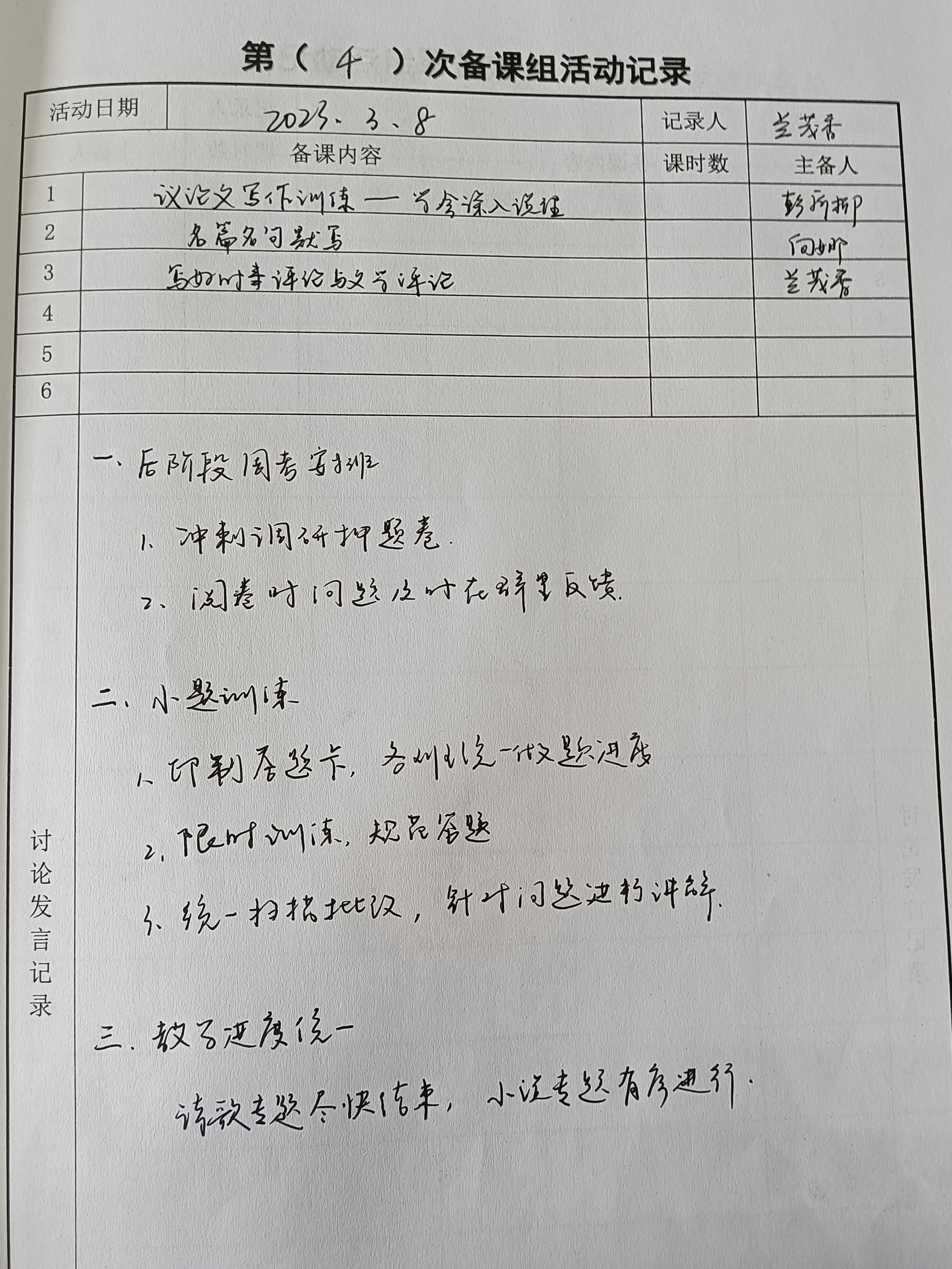 2023届高三下期语文备课组会议(2023.3.8)